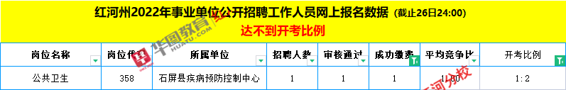 截止4月26日24点,红河州2022年事业单位公开招聘报名缴费已经结束,共14个岗位无人报名缴费,7个岗位为医疗岗。总结下来大体是因为这三个原因:1.学历要求较高,硕士研究生;2.定向招聘岗位,但专业不对口;3.专业要求太过冷门。