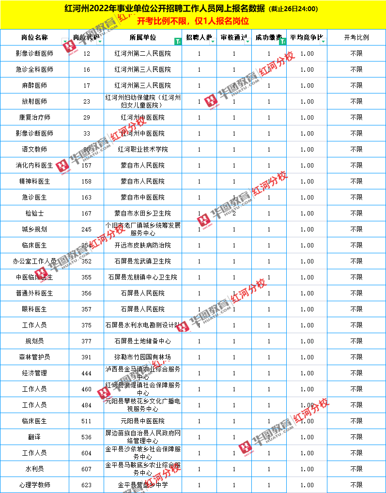 截止4月26日24点,开考比例不限,仅1人报考岗位一共28个,那就意味着这28位考生,只要最终分数达到单位招录最低分数,就能成功上岸了(此处投来小编羡慕的眼光)